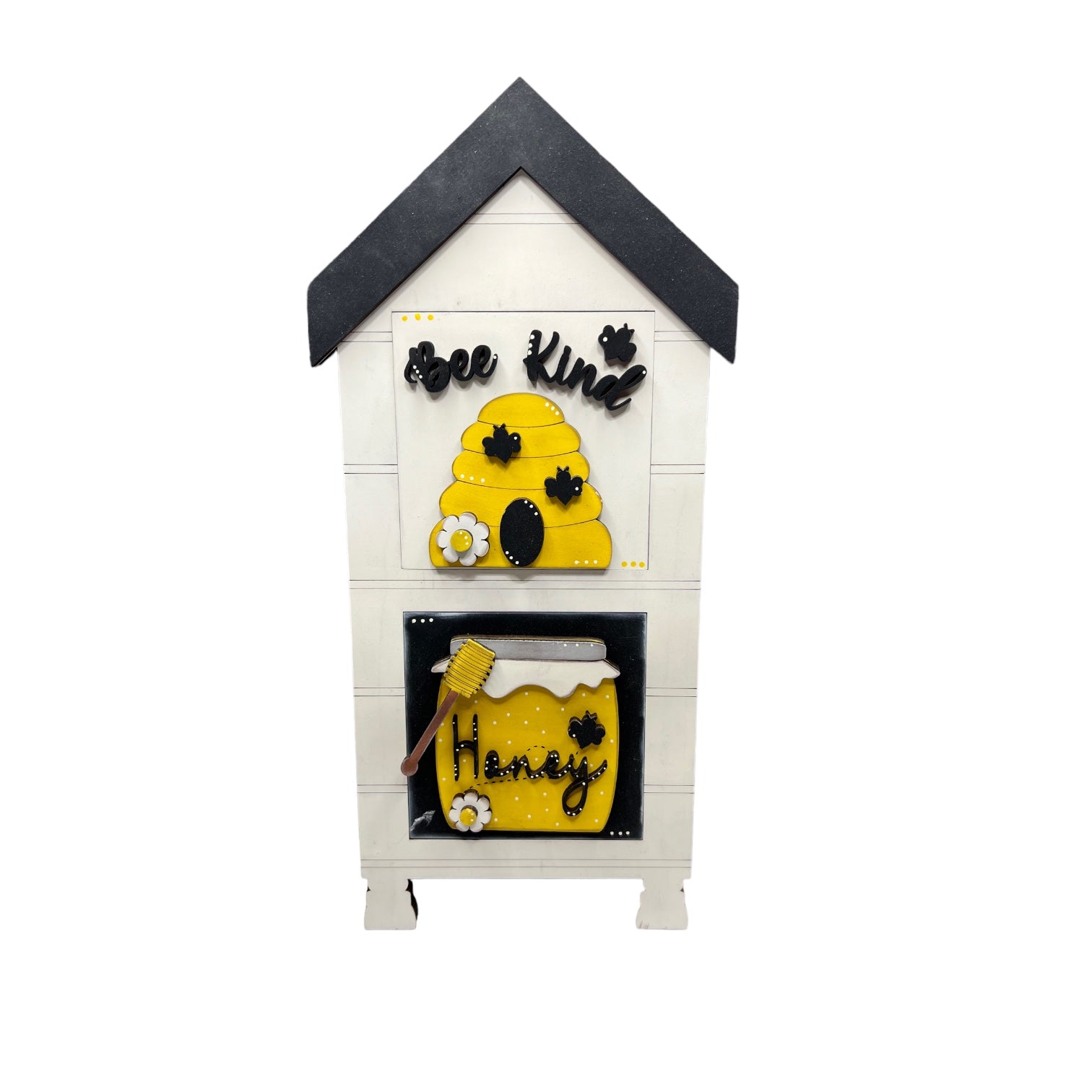 Experience the joy of making your own décor with Bee Home's 2 Window House Interchangeable kit! Using laser-cut 1/4" maple plywood, you can quickly assemble, personalize, and interchange designs to create beautiful pieces that bring your home to life. A fun DIY activity that turns any season, occasion, or design into a unique experience!