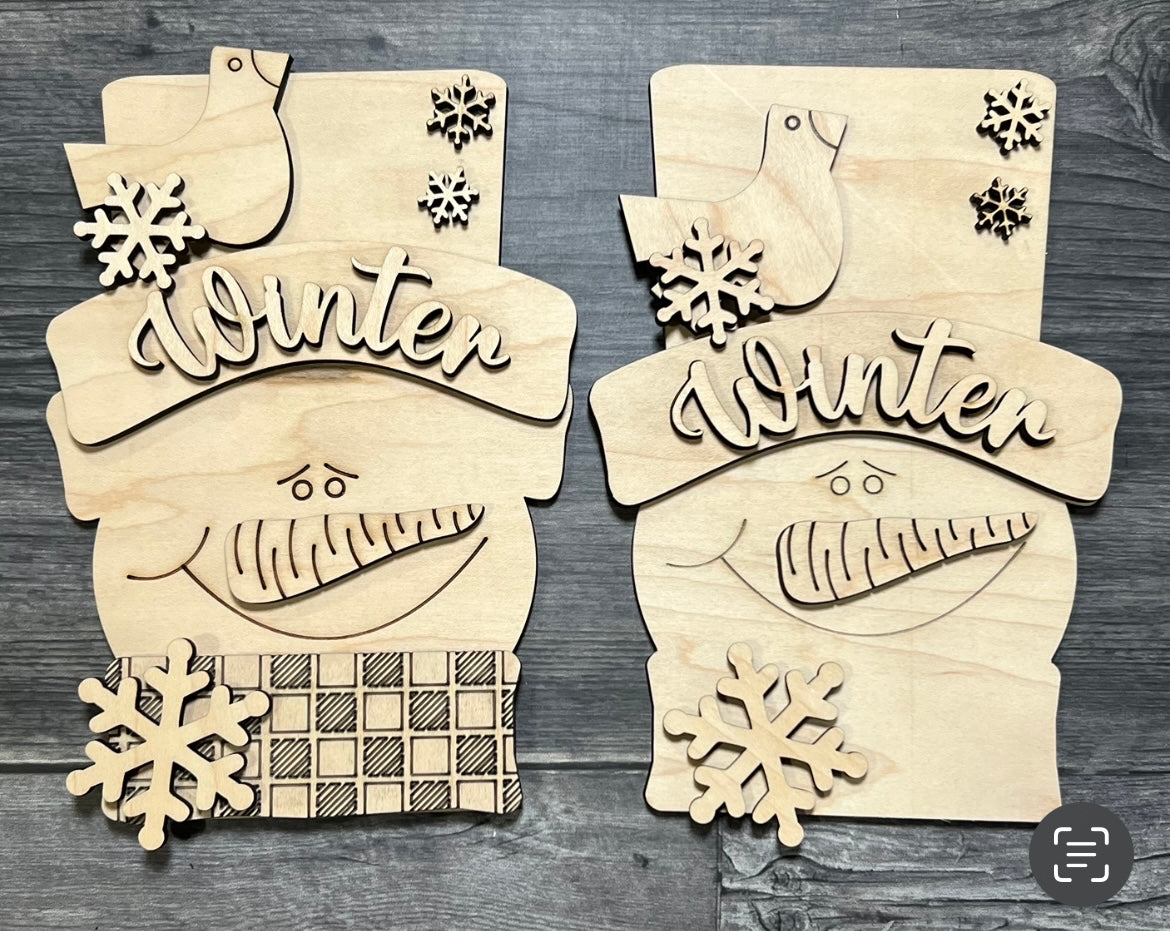 Welcome the wintry season with these laser-cut Snowman Heads! Made from 1/4" plywood, they'll bring a delightful smile to mantles, shelves, and other special spots in your home! A delightful touch of winter magic to bring a little joy to your home!